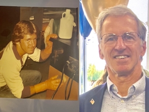 Pictured: David Charnock as a Buffalo State student; David Charnock today.